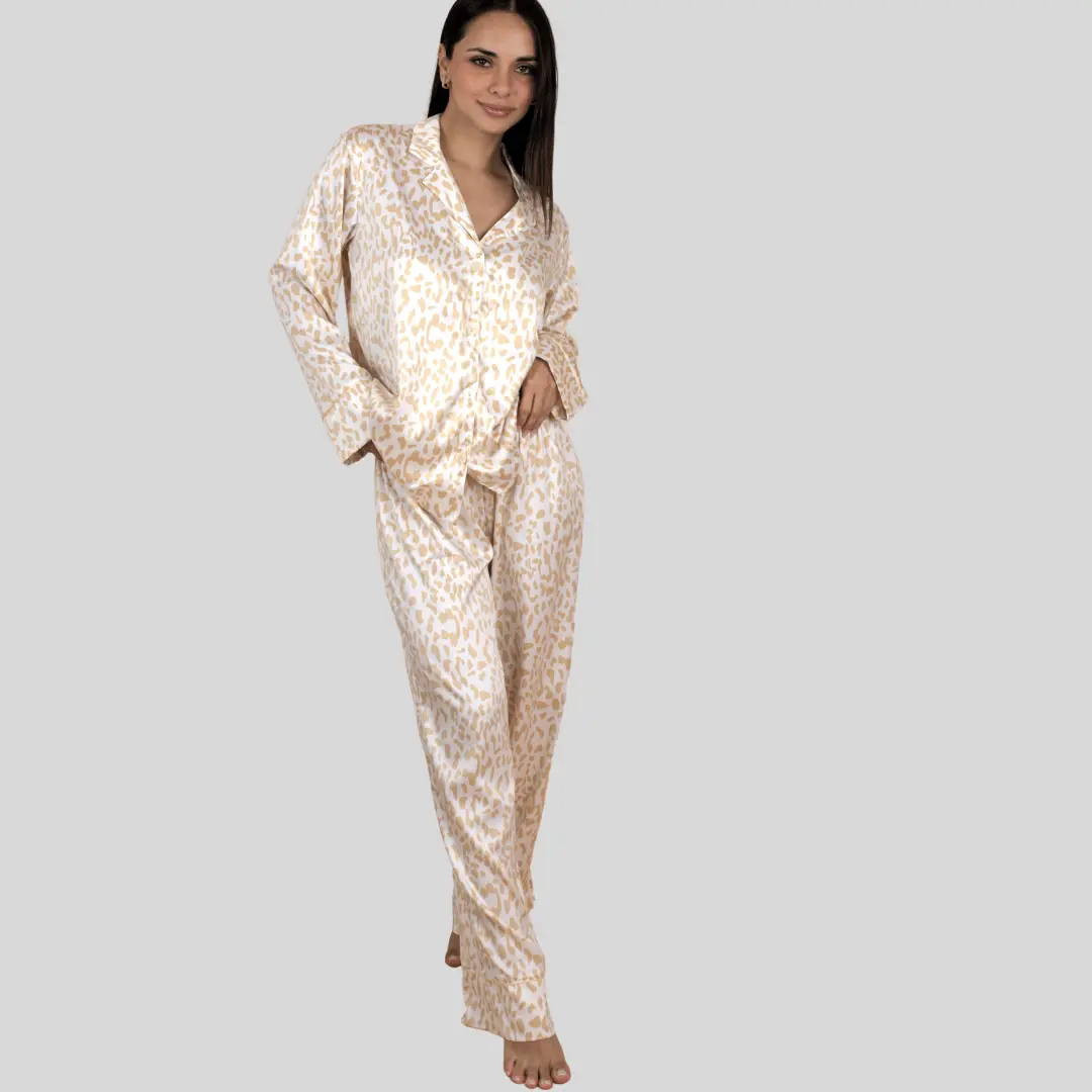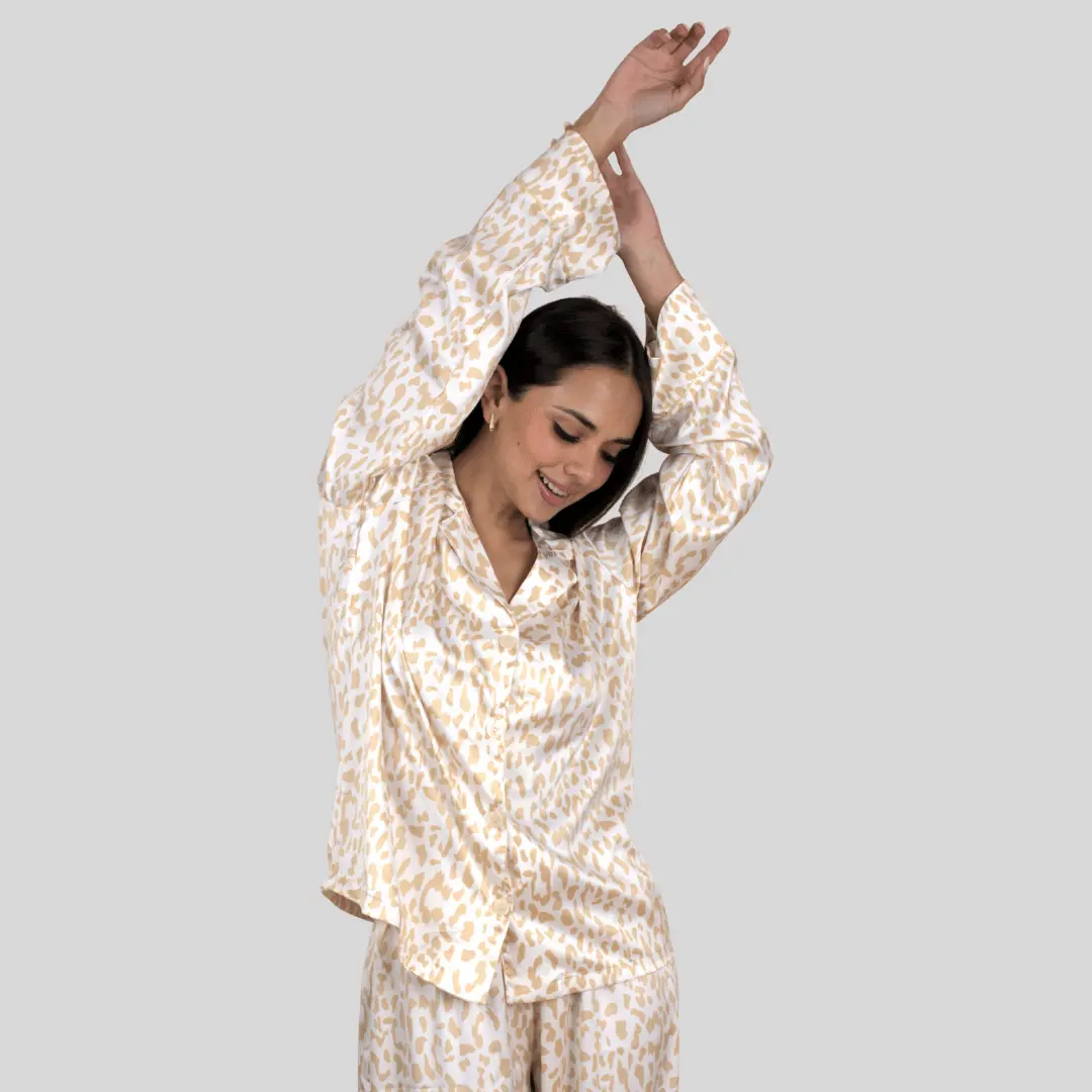 Experimenta el lujo en su máxima expresión con este conjunto de pijama clásico, diseñado y probado por nuestros expertos . Su brillo sofisticado y estilo atemporal lo convierten en un regalo ideal para diversas ocasiones. Inspirado en la elegancia del Medio Oriente, ofrece una comodidad excepcional gracias a su diseño oversize y versátil, perfecto para acompañarte desde las mañanas relajadas hasta las noches más elegantes. Confeccionado en seda charmeuse de poliéster de alta calidad, es suave, ligera y termorreguladora,